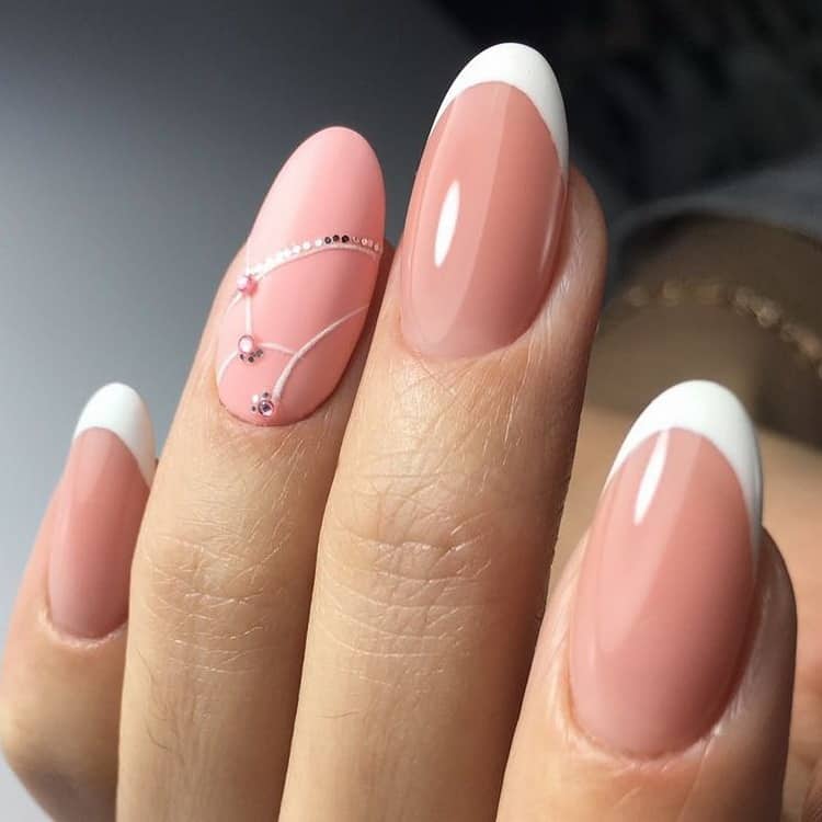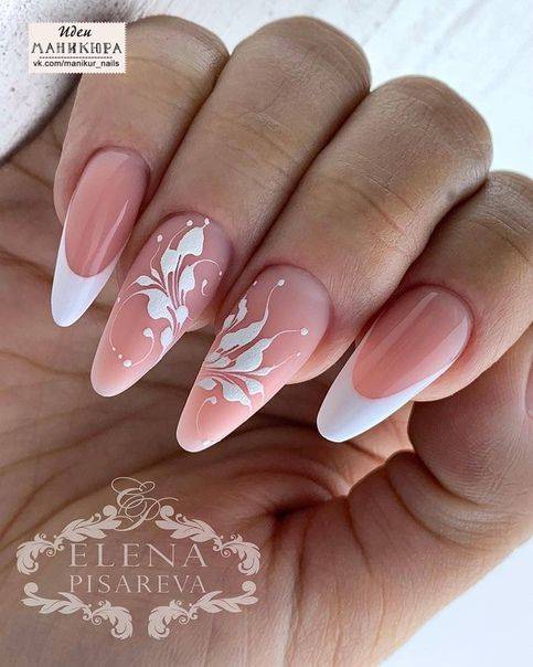 Отдельно стоит отметить, что на ноготках овальной формы можно реализовать абсолютно любую идею. Но самым популярным вариантом безусловно является френч. Мягкость линий в сочетании с таким рисунком смотрится изумительно. Поэтому многие невесты останавливаю свой выбор именно на нем. Также можно экспериментировать и пробовать необычные цветовые сочетания.
