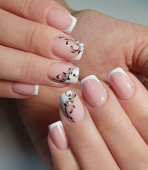 Актуальные формы классического маникюра френч — квадратная и овал. Вот как это смотрится на фото.
