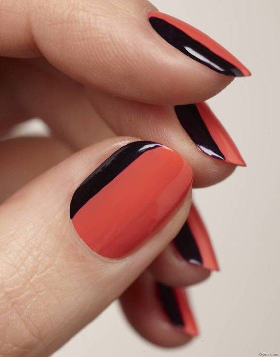 Черно-красный. Для женщин элегантного возраста этот маникюр не самый удачный вариант. Лучше выбрать молодым девушкам.