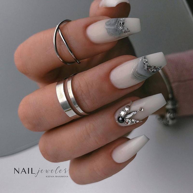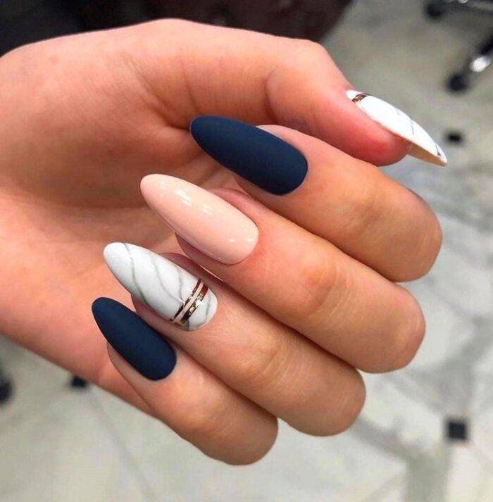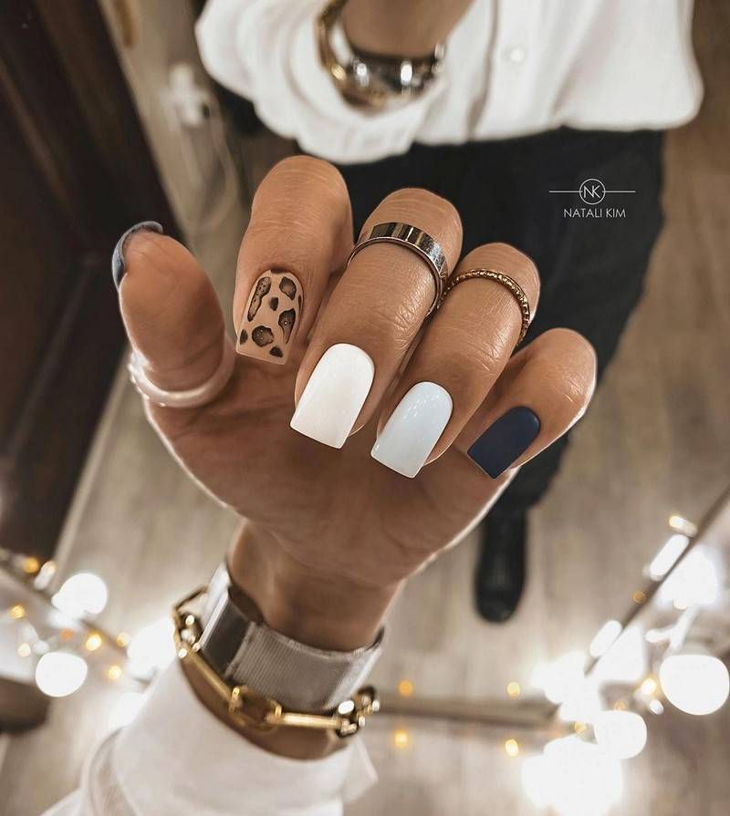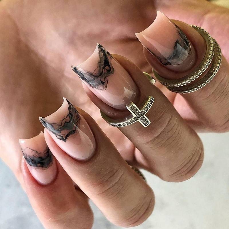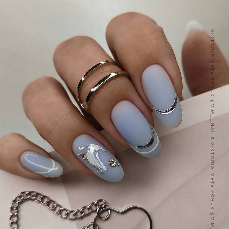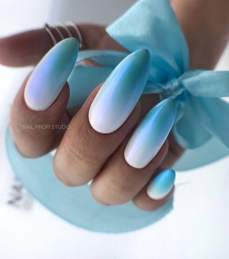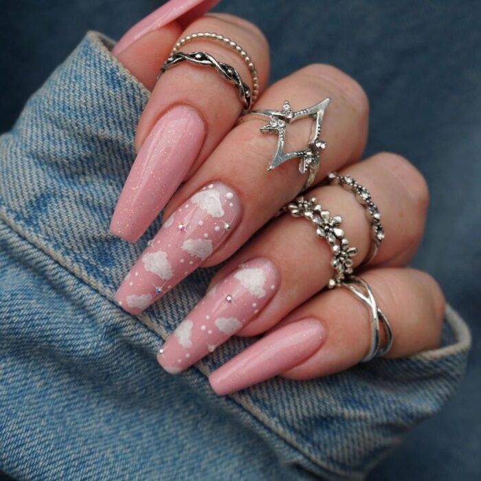 Теперь это еще один горячий тренд для ногтей, связанный с белым цветом. Вы можете использовать любой базовый цвет по вашему выбору или даже сделать маникюр, а затем просто добавить несколько белых облаков для ангельского образа. Но самый популярный способ сделать это с любым оттенком синего. Вы можете выбрать темно-синюю основу или даже блестящую синюю, чтобы создать эффект ночного неба.