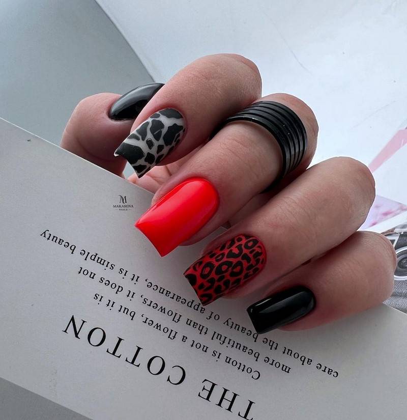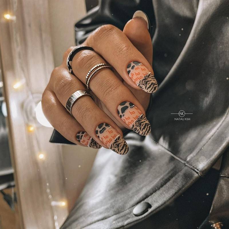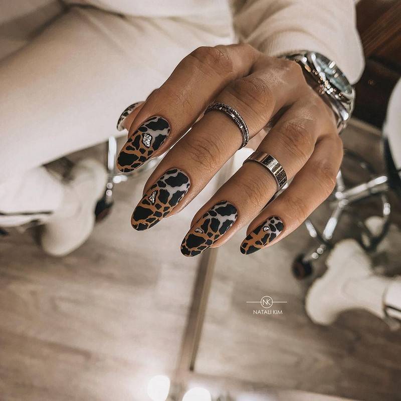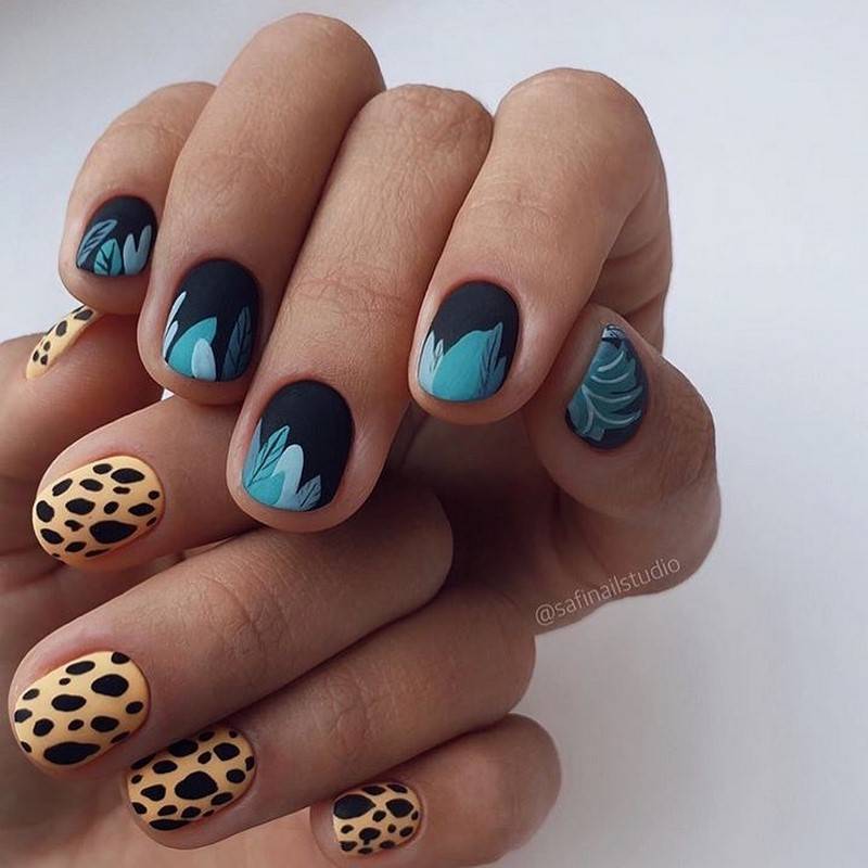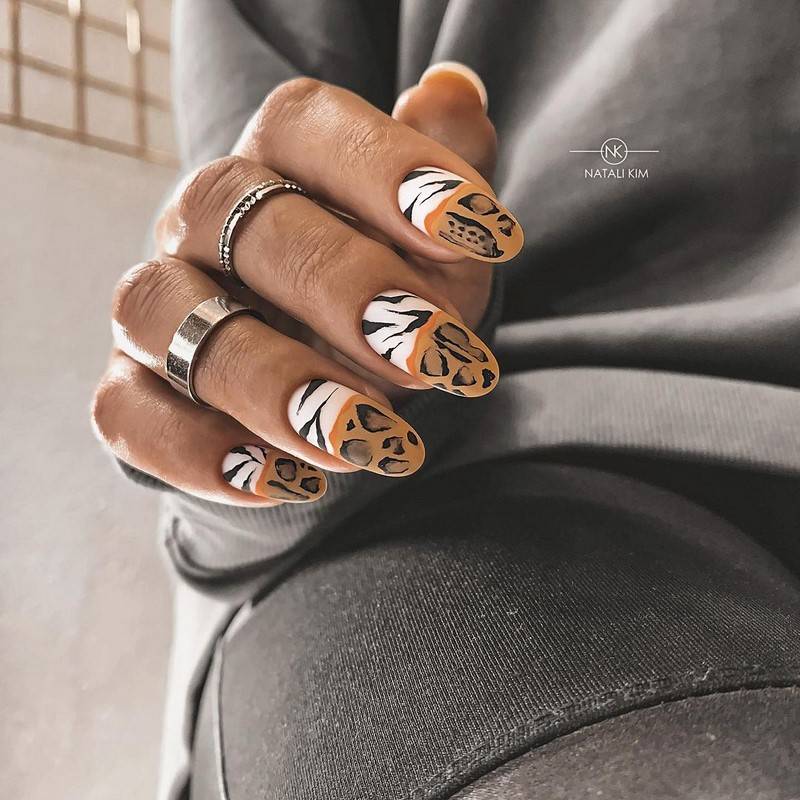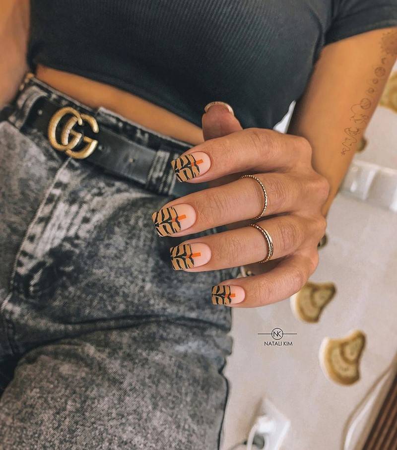 С оттенками и цветами понятно, а что касается рисунков? Как быть здесь? Хитами в грядущих сезонах будут яркие рисунки, среди которых уже набирает популярность леопардовый в классическом тигровом и леопардовом тоне, животные рисунки – под зебру, змею и т.д. А осенью, например, можно украсить ногти цветными осенними листьями. Да, растительные орнаменты снова в тренде и снова востребованы среди нейл-индустрии.