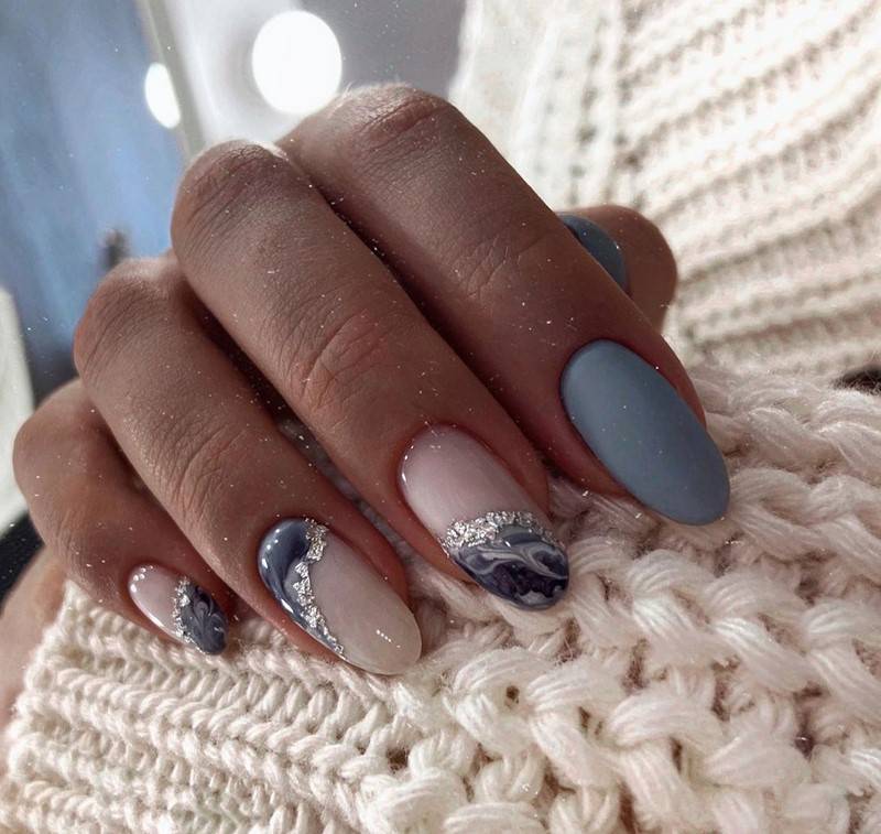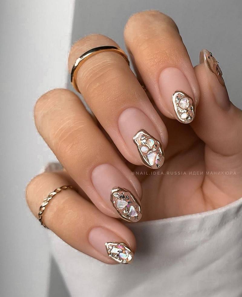 Осенне-зимний маникюр 2023-2024 однозначно сияющий и сверкающий в разнообразных нюдовых. Теплых и холодных цветах, в модной потали, а также с использованием декор-элементов. В тренде будет и паутинка, а также различные металлизированные втирки, наклейки и даже глиттер. С таким ярким маникюром любой праздник будет особенно запоминающийся, а если следует быть более строгой и сдержанной, на помощь придет верный и добрый нюд с матовым эффектом, который всегда будет смотреться аккуратно, стильно и дорого.