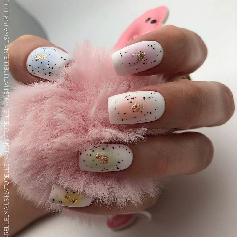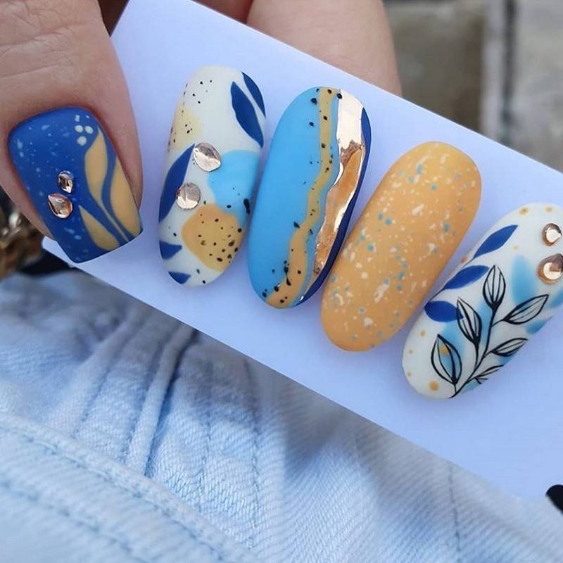 Броская абстракция завоевала списки модных трендов не только в фэшн-индустрии, но и в мире маникюра. Не бойтесь сочетать красочные оттенки и яркий декор. Тандем белого горошка, космических разводов и разнообразных линий — все это смотрится круто и новомодно. С таким дизайном вы будете выглядеть суперстильно и молодежно.