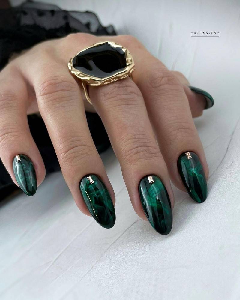 Некоторые девушки осторожно относятся к зеленому цвету ногтей, забывая, что он имеет множество оттенков. А их так много, что не подобрать понравившийся цвет для определенного сезона и стиля одежды просто невозможно