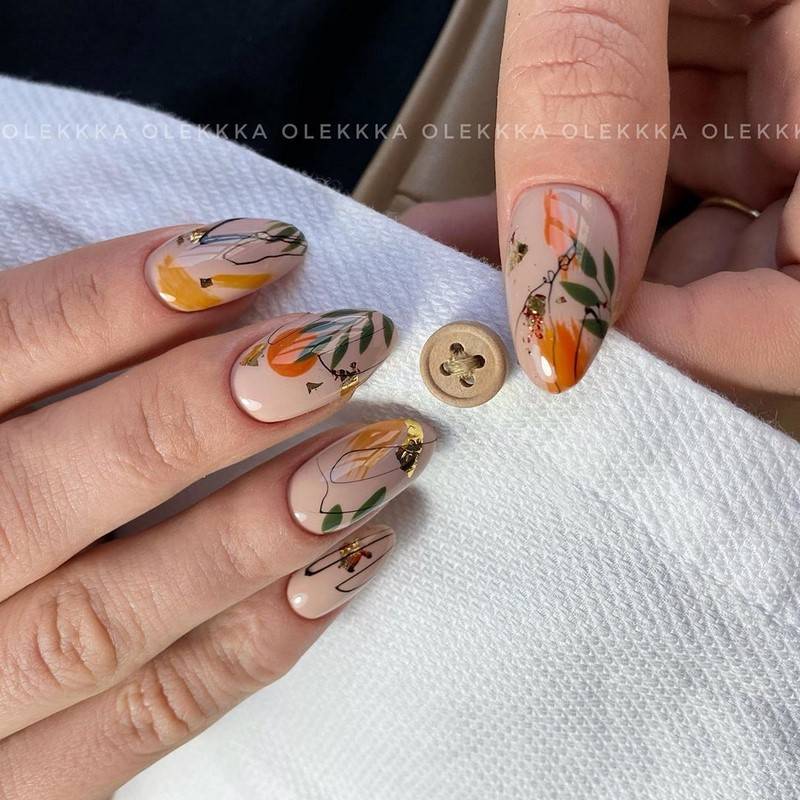 Как красиво смотрятся разные рисунки на ногтях в любимых осенних тонах сезона 2023.