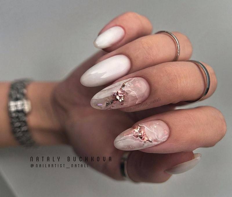 Миндальная форма стала фаворитом у большинства девушек, она смотрится очень элегантно и женственно. Но ее не рекомендуется выбирать любительницам активного образа жизни — такие ногти могут ломаться. По той же причине не подойдет она обладательницам ломких и тонких ногтевых пластин.