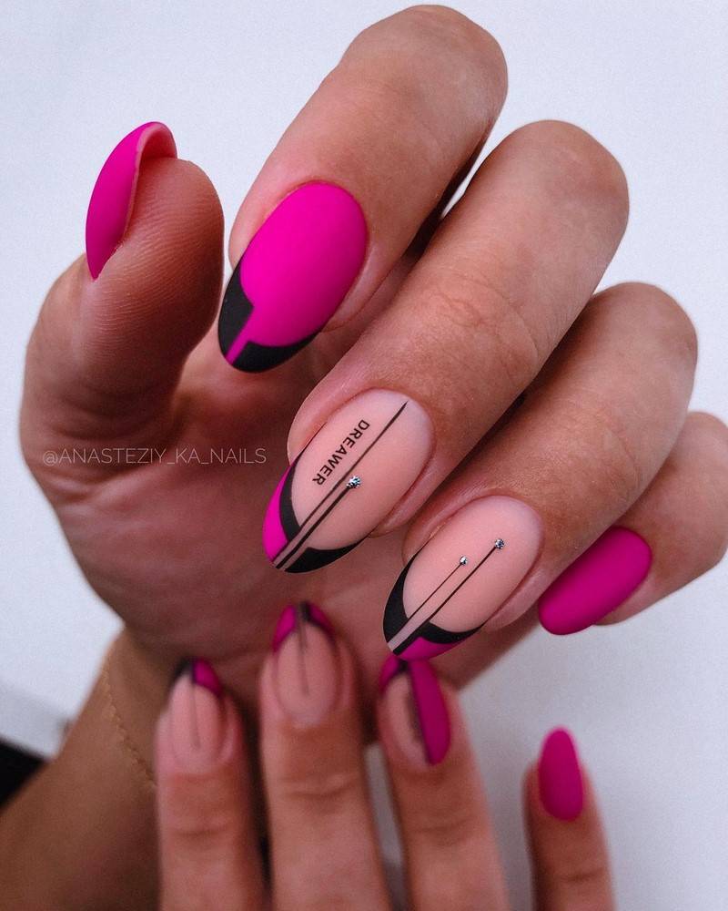 Это один из тех редких цветов, которые исключительно хорошо смотрятся как на длинных, так и на коротких ногтях. А если вы настроены по-настоящему окунуться в мир розового, сочетайте этот цвет ногтей с ярко-розовым нарядом.