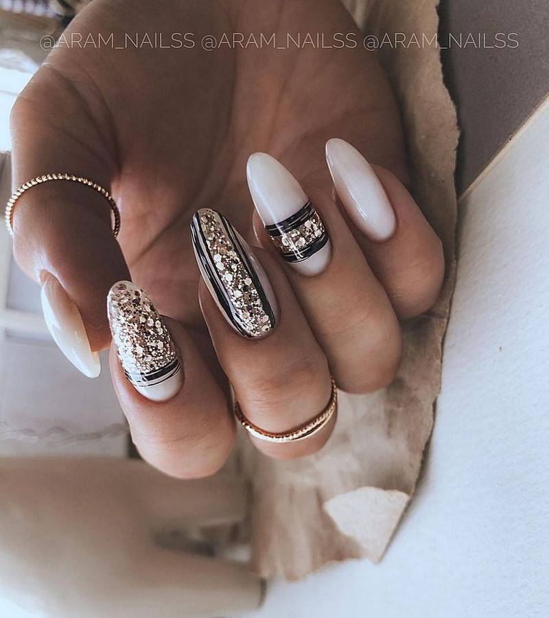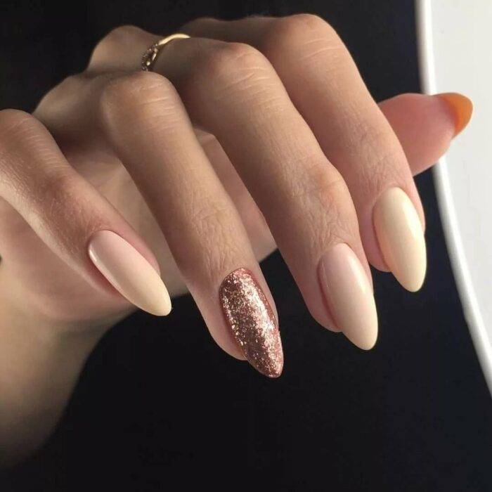 Глиттер — самый популярный вид украшения ногтей не один сезон подряд. Если говорить о трендах осеннего маникюра с пайетками 2023, отдавайте предпочтение серебряным и золотым пайеткам, выбирайте теплые или прохладные пайетки на основе лаковой основы. Цветные пайетки также хорошо смотрятся в маникюре на коротких и длинных ногтях, они могут быть в тон с лаком или на контрасте.