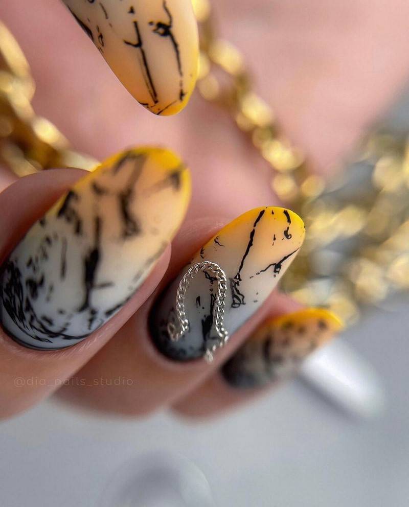 Чарующий дизайн, который завораживает своим таинственным видом. Этот красивый маникюр входит в модные тенденции 2022 года. Для его создания требуется минимум времени, но результат впечатлит. Актуальные цвета: