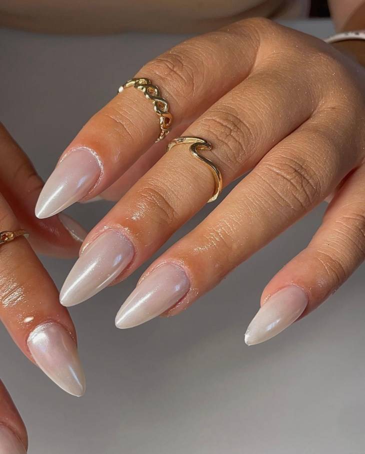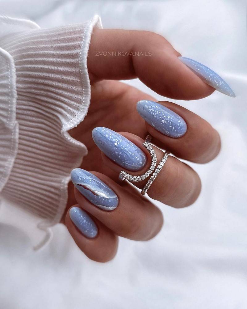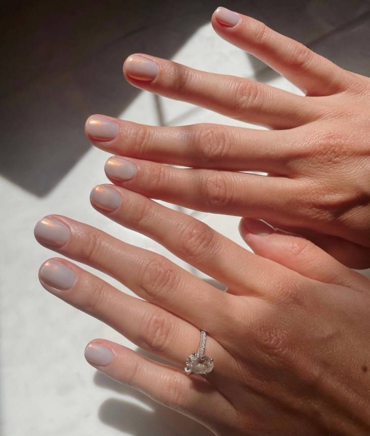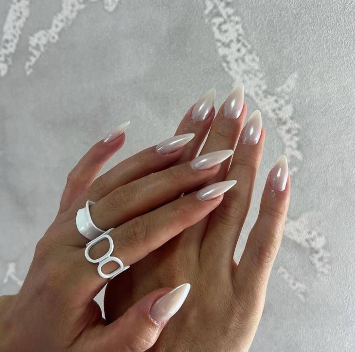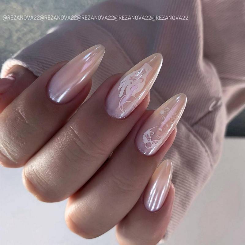 Самый яркий тренд маникюра — ногти, напоминающие сахарную глазурь. Это разновидность втирки, которая делается на светлый лак. Тренд на «глазированные» ногти начала Хейли Бибер, делая такой маникюр несколько месяцев подряд. Маникюр стал вирусным на тик-токе и приобрел мировую популярность. Такой маникюр смотрится красиво на ногтях любой формы и длины.