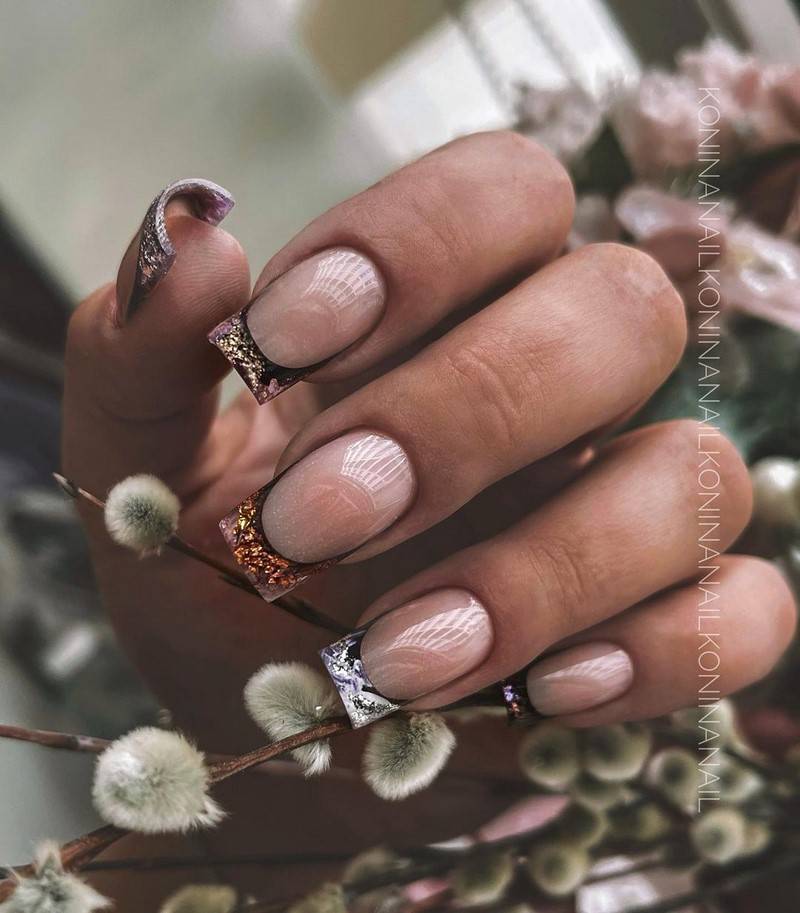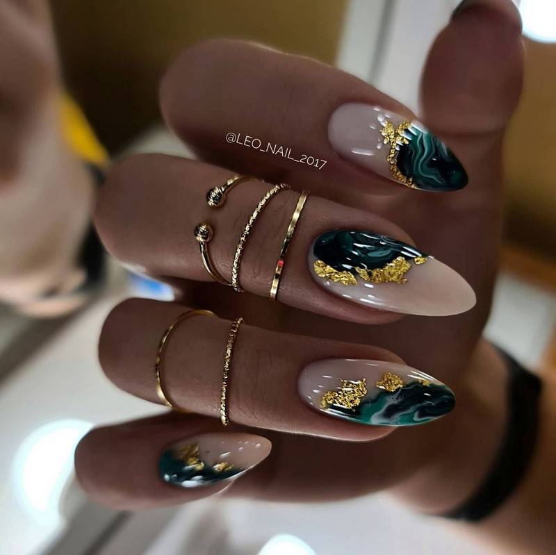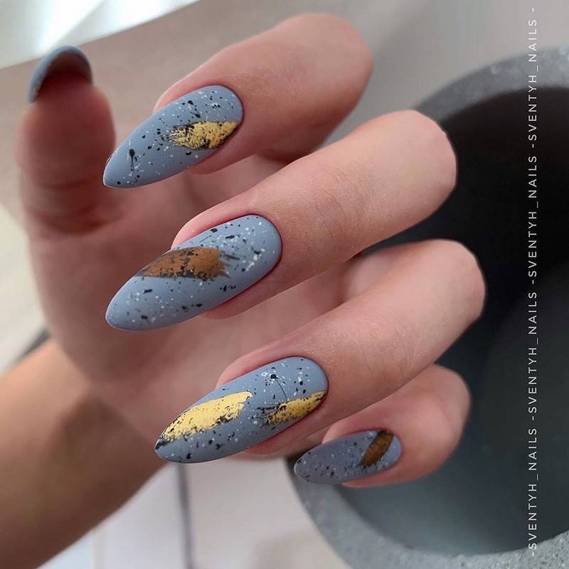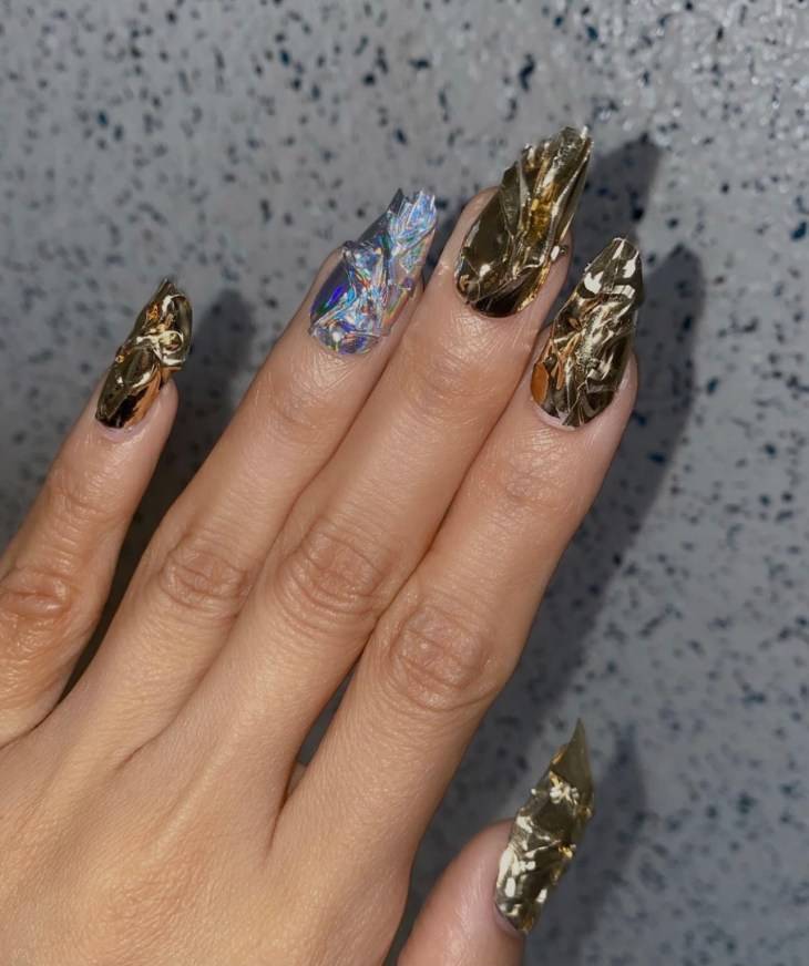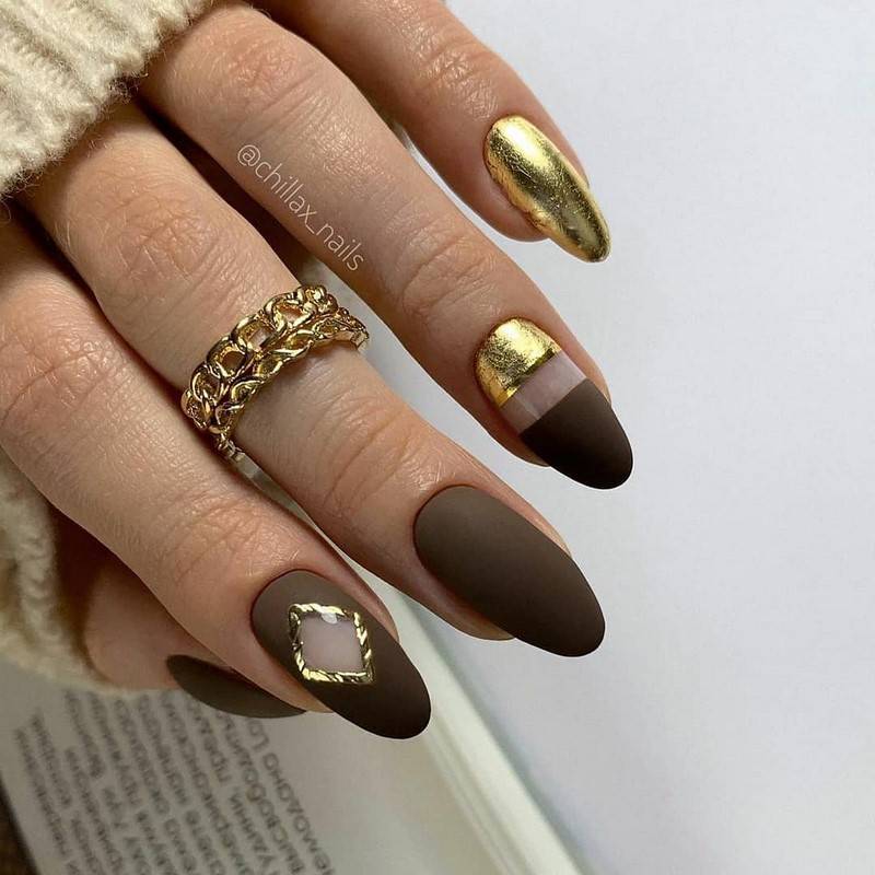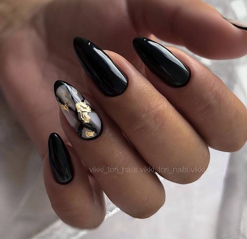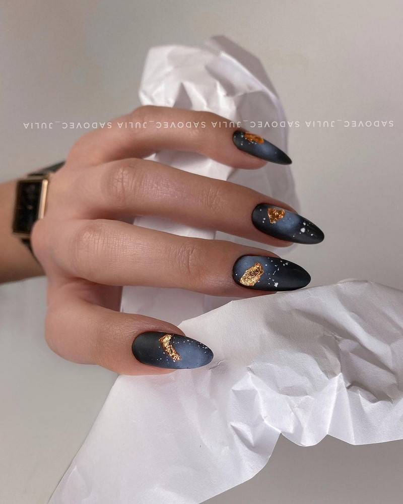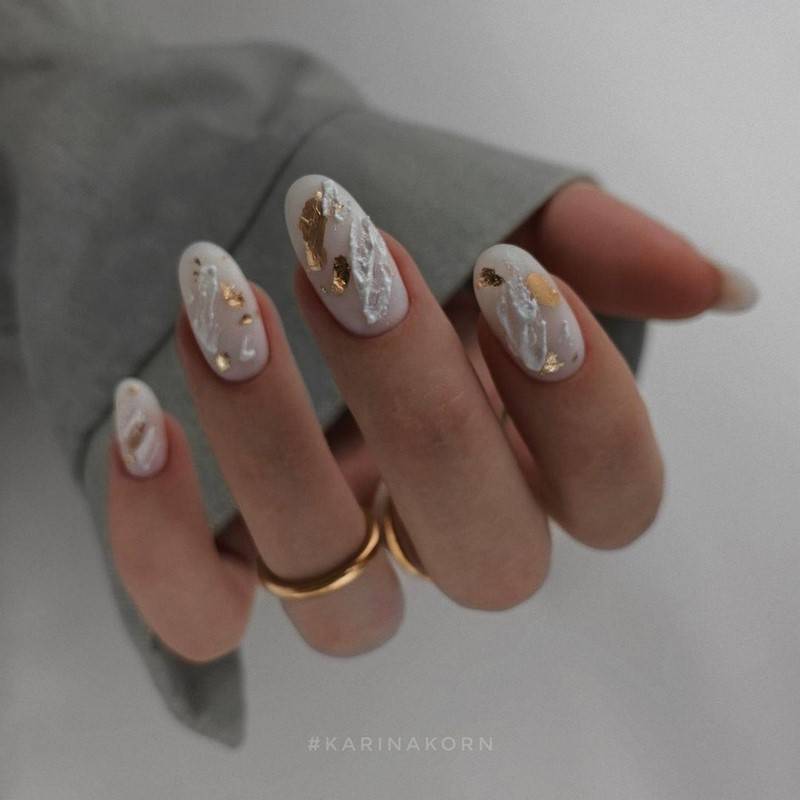 Такие ногти хорошо дополнит золотая фольга