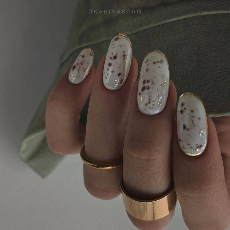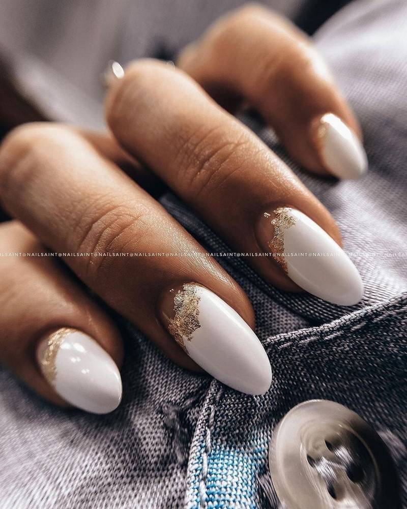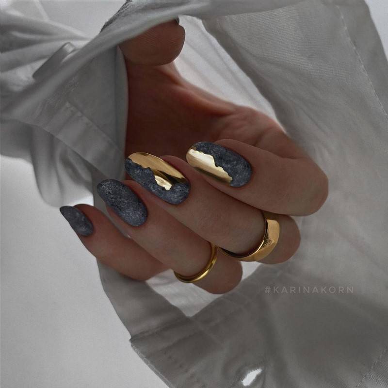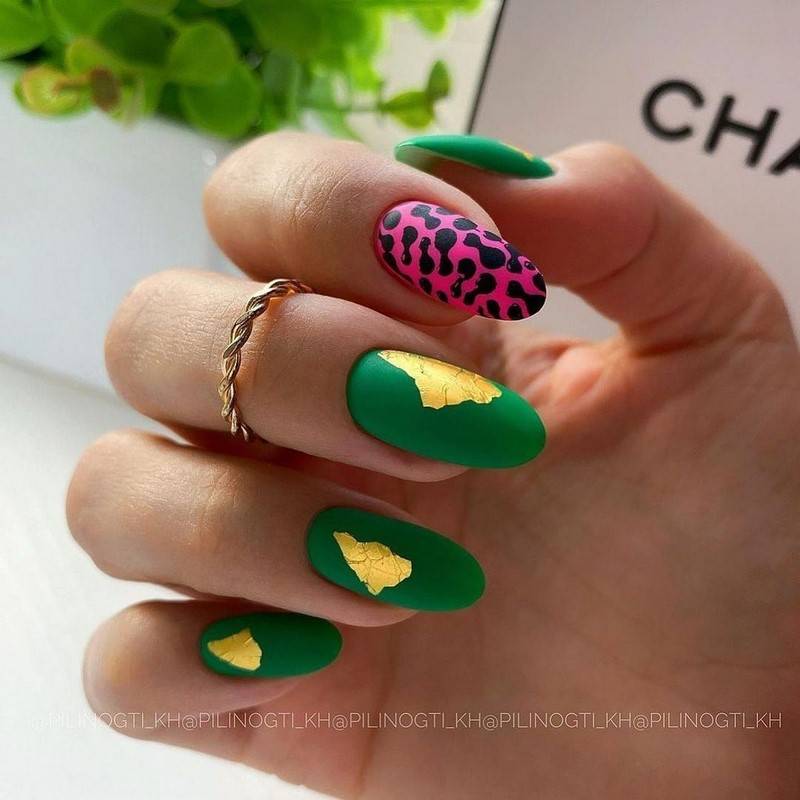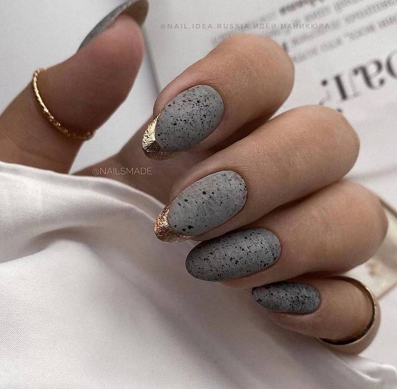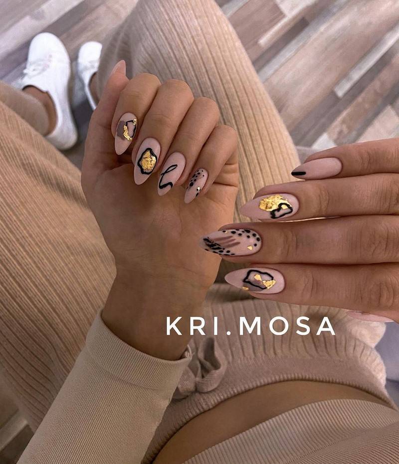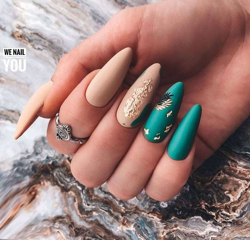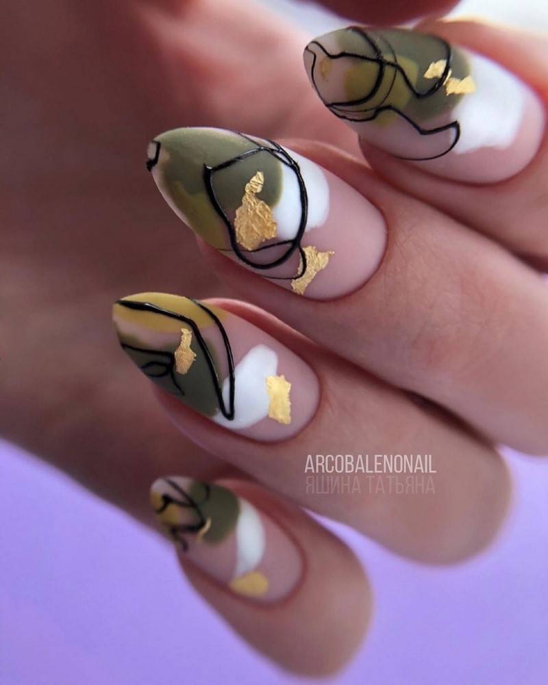 Такие ногти хорошо дополнит золотая фольга