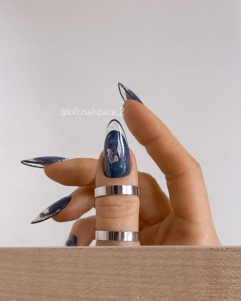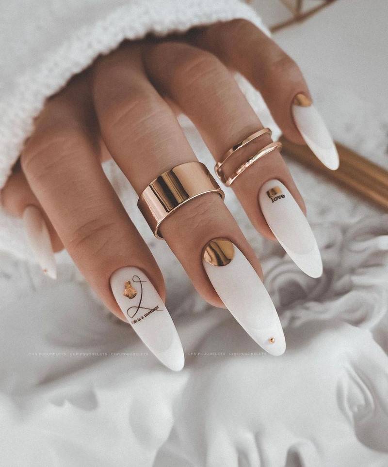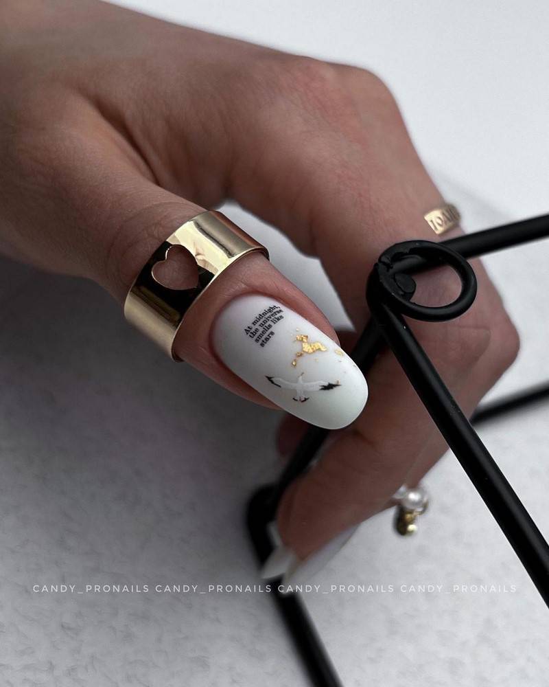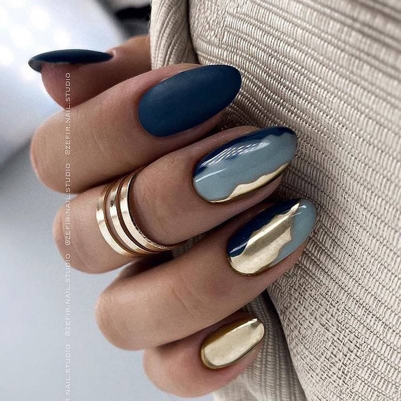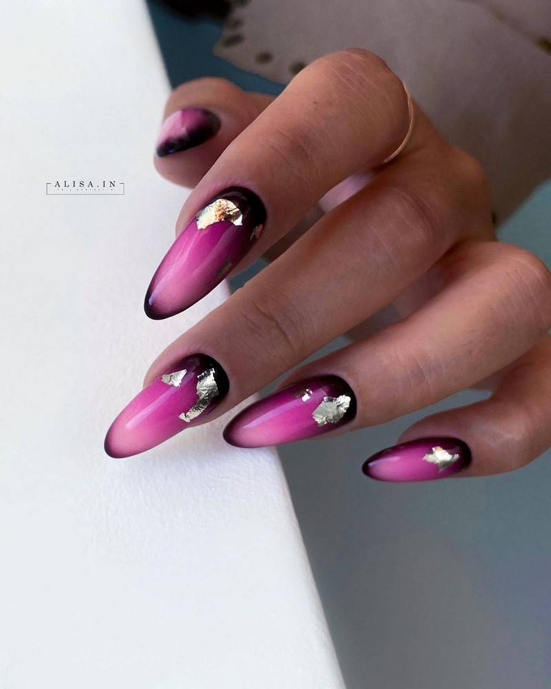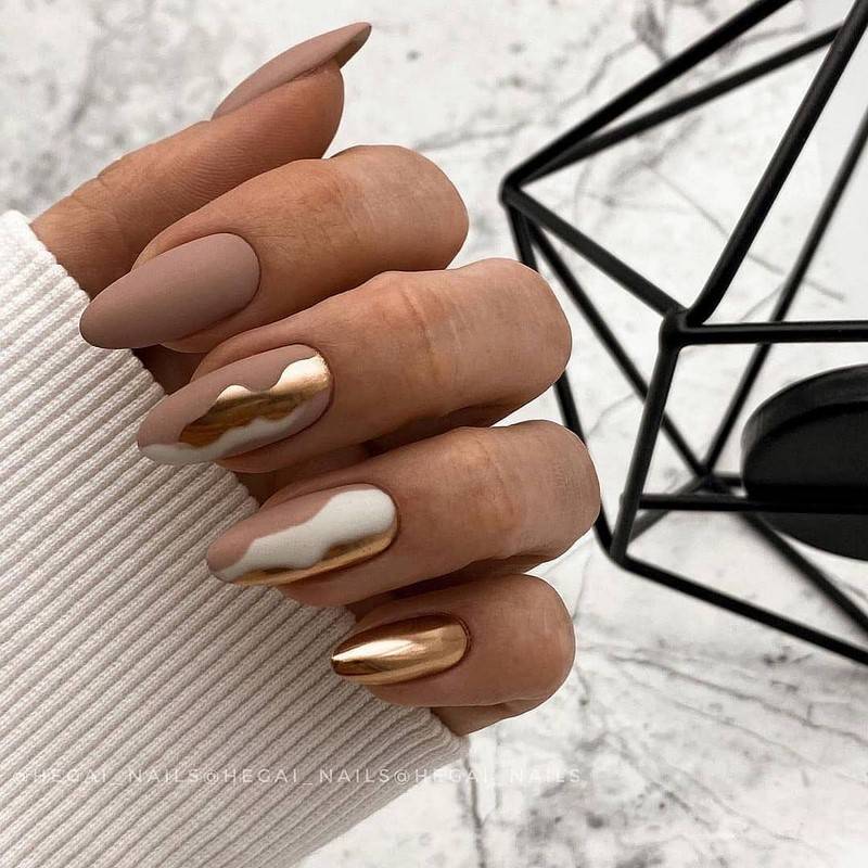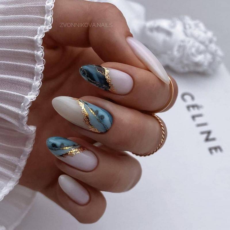 Такие ногти хорошо дополнит золотая фольга