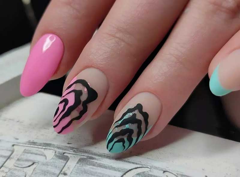 - Игру контрастов, точно такую же, как в природе, можно добиться, используя одновременно разные нейл-методики.