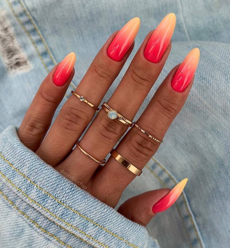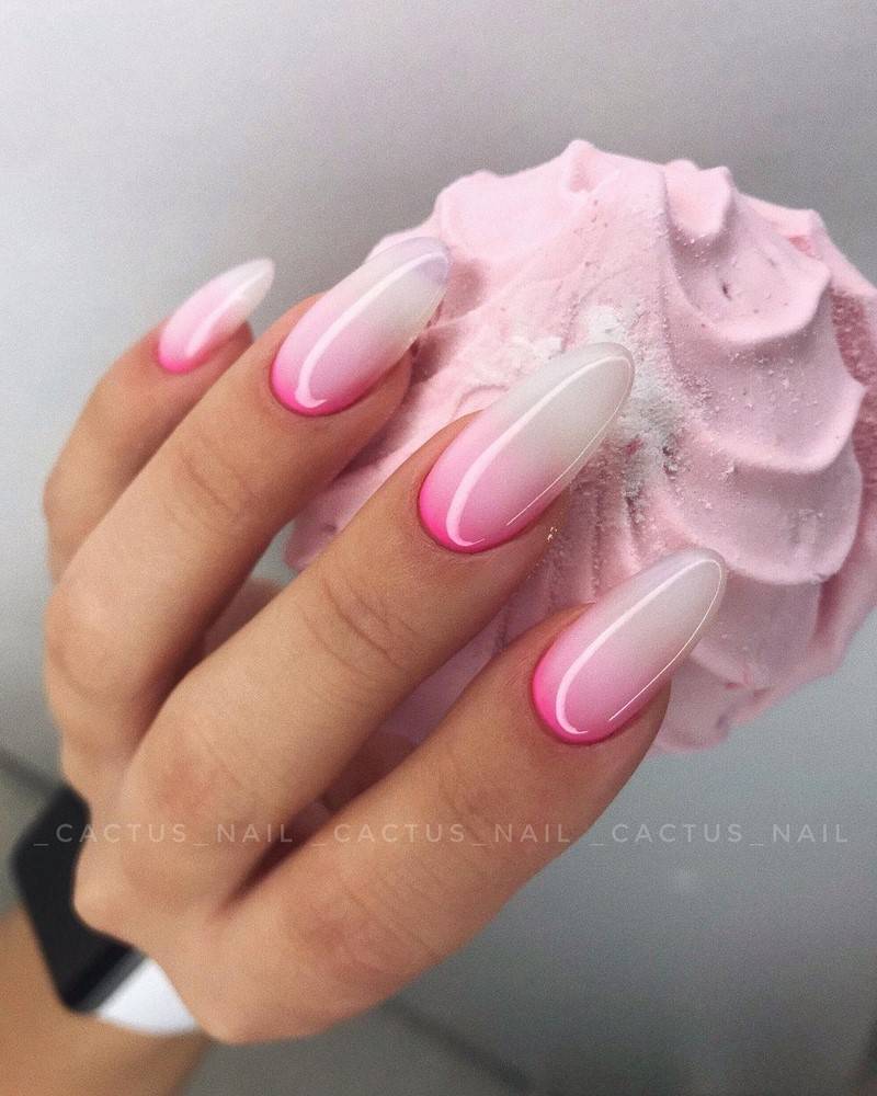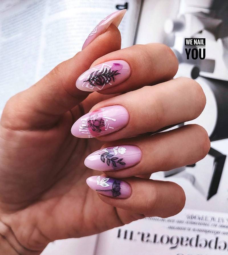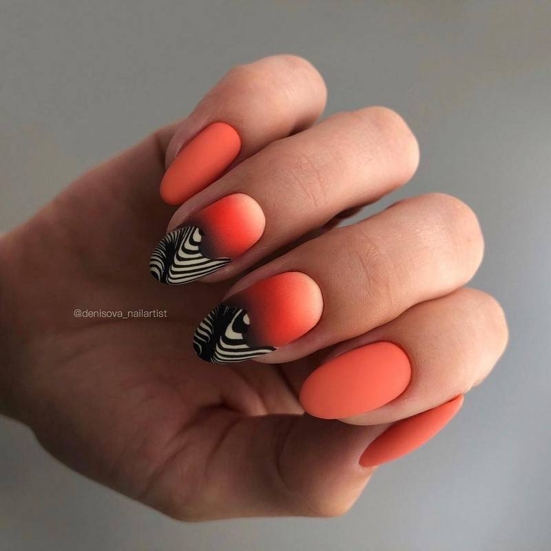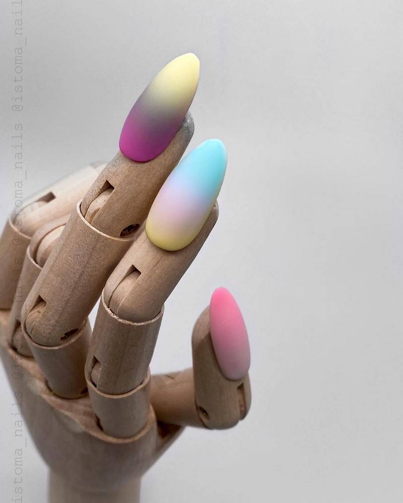 Актуально будут смотреться и градиентные идеи. Абсолютно новым и модным решением будет создание дизайна разными оттенками одного и того же цвета в порядке нарастания его насыщенности. Такой вариант поможет поднять настроение в хмурую погоду, а также отразит оригинальность его обладательницы.