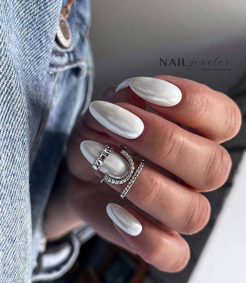 Молочный лак и другие оттенки белого – среди главных трендов маникюра. Один из самых актуальных вариантов – перламутрово белое покрытие.