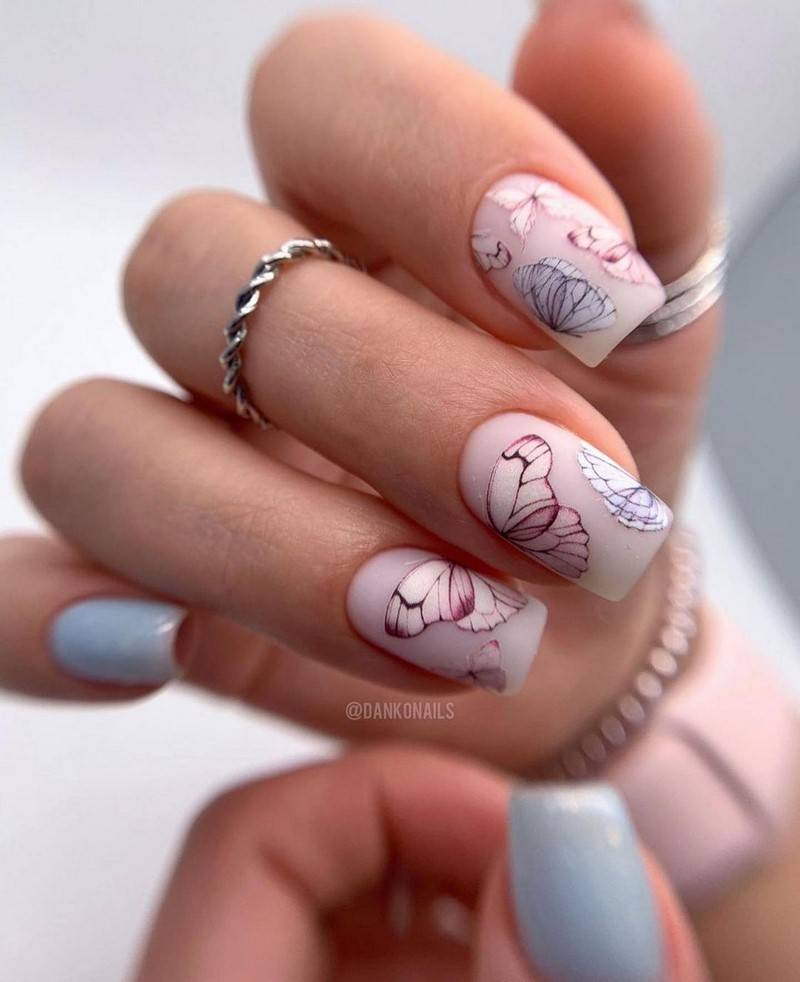 Мода на приглушенные цвета находит свое отражение в маникюре. Среди самых модных приглушенных цветов сезона: холодный серо-голубой, приглушенный сиреневый, розовый и серо-синий.