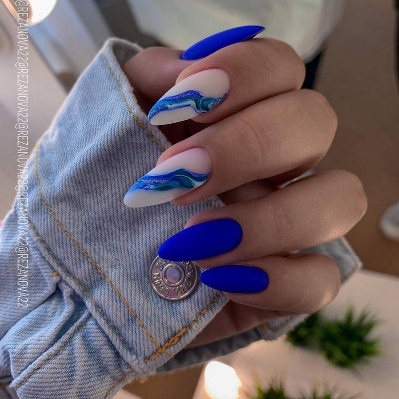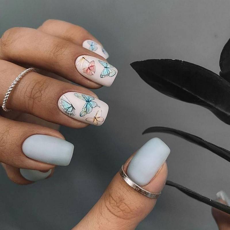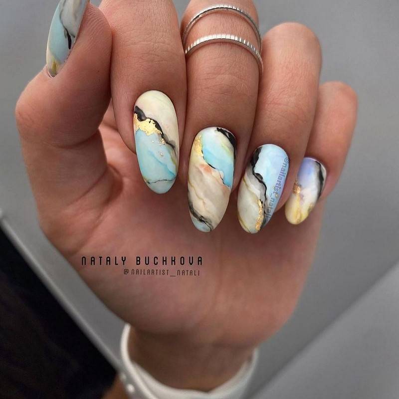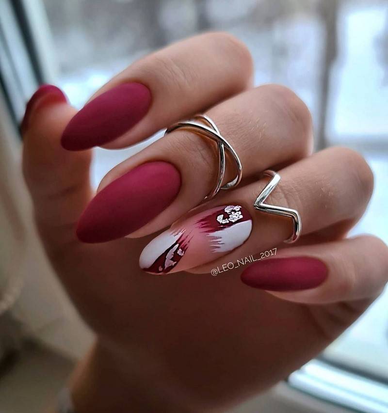 Актуальным в этом сезоне остается по-прежнему и матовое покрытие. Стилисты рекомендуют использовать его именно при создании маникюра на длинных ногтях.