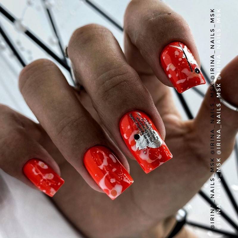 Алый лак хорошо будет сочетаться в 2024 году с анималистичным принтом, блёстками, чёрным или белым цветом, металликом.