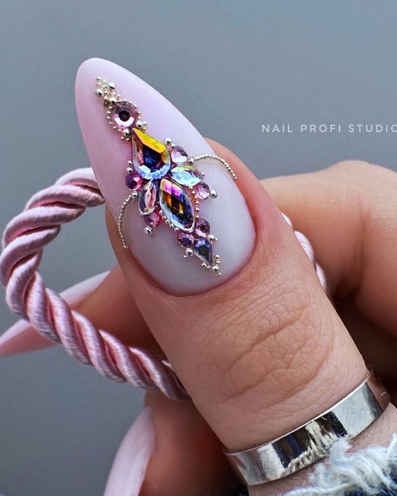 Шикарно смотрится маникюр с камнями только в матовом исполнении, такой дизайн никого не оставит равнодушным. Осенью сезона маникюра 2023 камни и кристаллы наносятся на ногтевую пластину в виде красивого рисунка на одном-двух пальцах, либо в виде мелких камешков на всей ногтевой пластине, также как акцент. Идеи для вдохновения представлены на фото ниже: