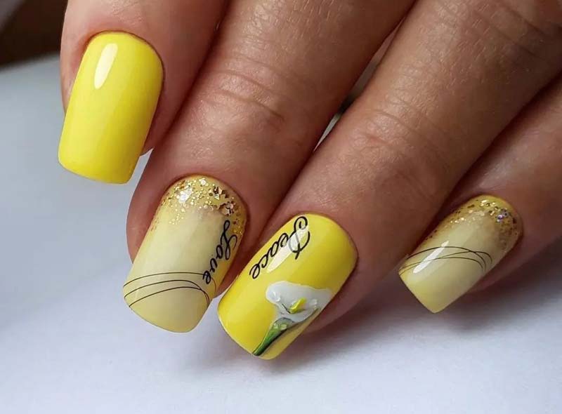 В зимнем маникюре ярко и дорого смотрятся золотые ногти. Золото можно сочетать с созвучными оттенками: цвет желтка, коричневый, нежно-жёлтый, песочный.