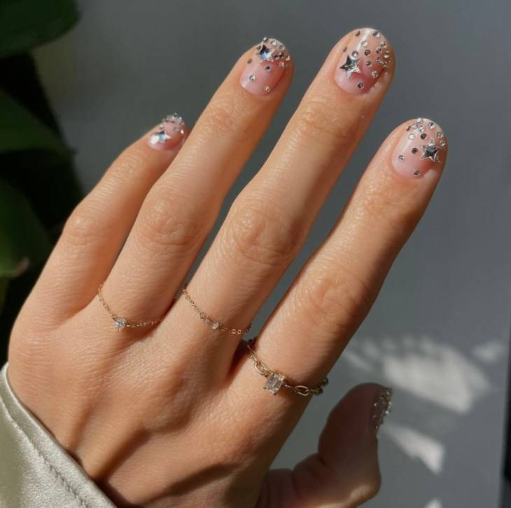 Осенний маникюр с камнями и стразами: фото 2023