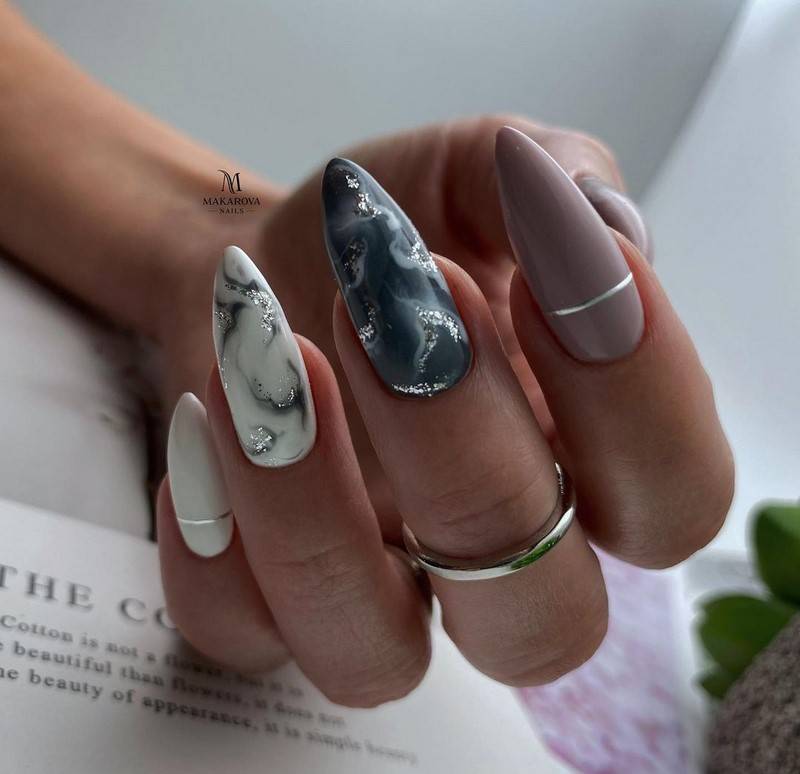 В 2024 году в холодное время года актуален будет серый лак для ногтей, который лучше сочетать с нюдовым, натуральным оттенком, бежевым, коричневым, оливковым, пыльная роза, золотым.