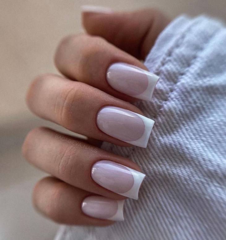 Особенно удачно белый лак сочетается с нежно-розовым или голубым, светло-жёлтым оттенками.