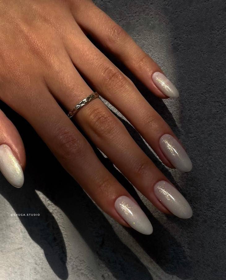 Самый яркий тренд маникюра — ногти, напоминающие сахарную глазурь. Это разновидность втирки, которая делается на светлый лак. Тренд на «глазированные» ногти начала Хейли Бибер, делая такой маникюр несколько месяцев подряд. Маникюр стал вирусным на тик-токе и приобрел мировую популярность. Такой маникюр смотрится красиво на ногтях любой формы и длины.