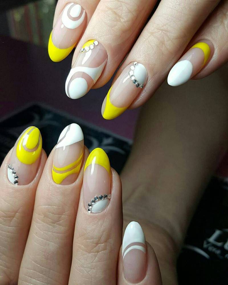 Его выбирают самые стильные леди, которые хотят привлечь к себе внимание. В основе дизайна лежит нанесение на ногти лака, рисунка и страз по всей окружности