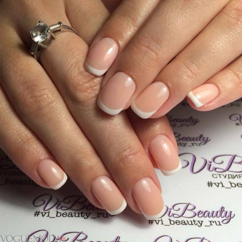 На коротких овальных ногтях идеально будет смотреться классический французский маникюр. При его создании следует придерживаться правил: