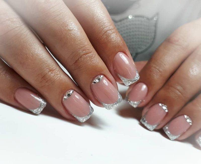 Существует множество интересных идей френча для коротких ногтей. С помощью блестящего дизайна можно добавить немного дополнительного мерцания в жизнь. Френч включает нейтральный фон, темные кончики и блеск, который распределяется неравномерно.
