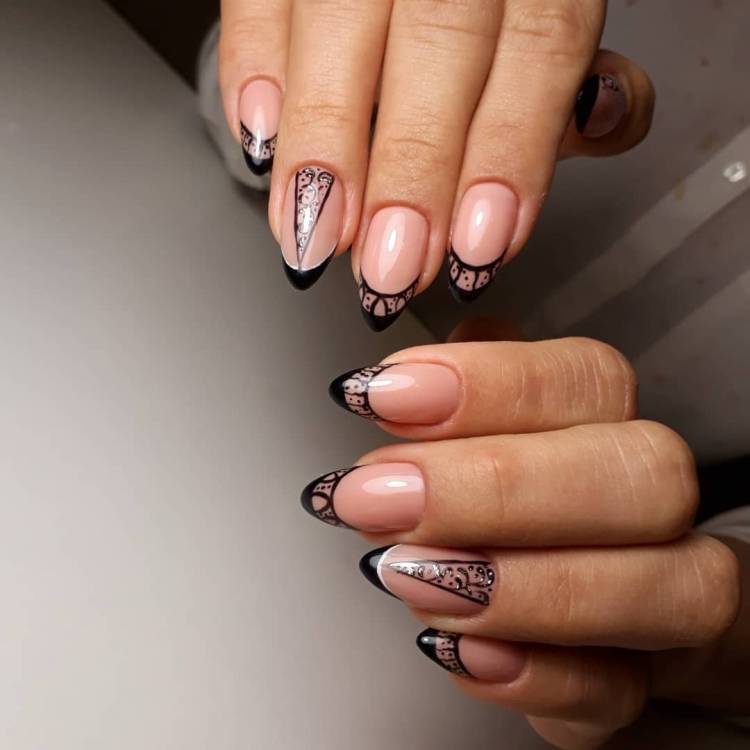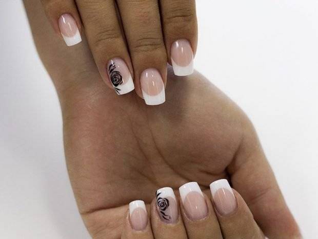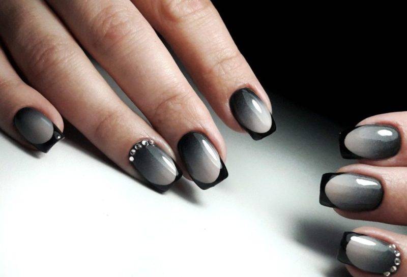 Чёрный френч также в моде. Он всегда выглядит несколько загадочно. Он более демократичен, чем красный, его прекрасно можно сочетать с любыми цветами, наносить рисунки, украшать ногти стразами.