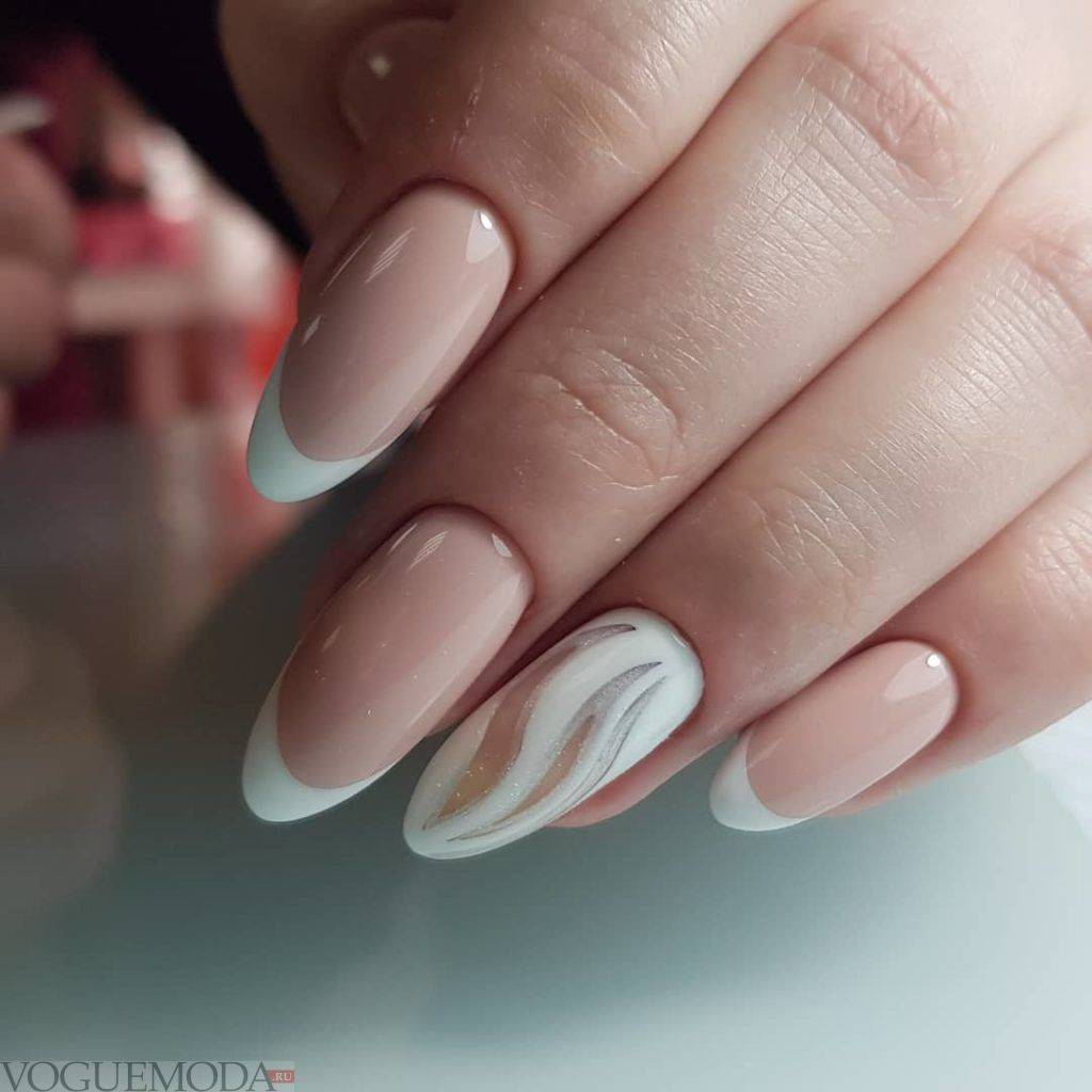 - часть дизайна — френч наносится на 1-2 ногтя руки;
