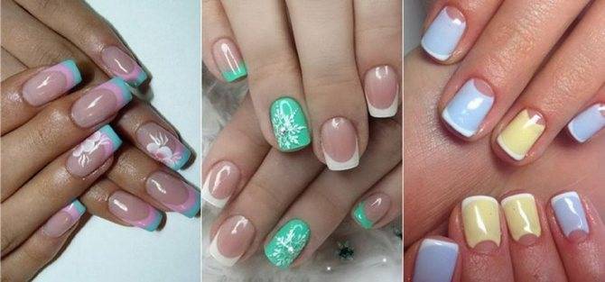Дизайн для теплого времени года отличается разнообразием. Цветная палитра красок отлично сочетается с макияжем, тоном загорелой кожи и легкой воздушной одеждой. Дизайнеры предлагают несколько способов сделать классический французский маникюр уникальным и привлекательным. Для этого необходимо воспользоваться популярными расцветками гелей и лаков, входящих в вашу коллекцию.
