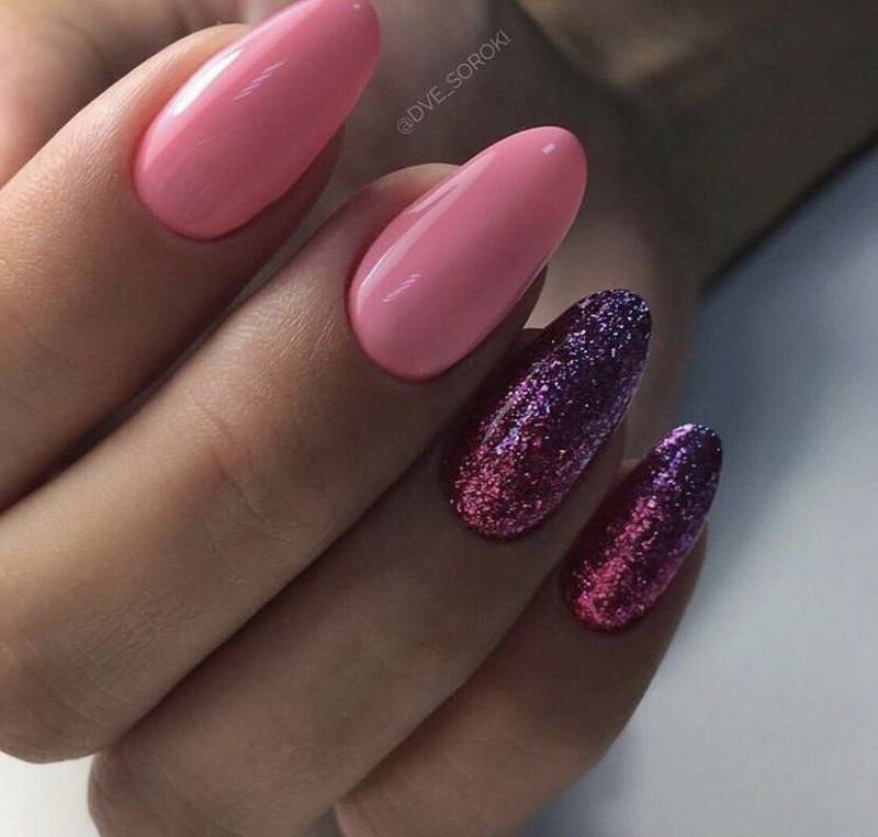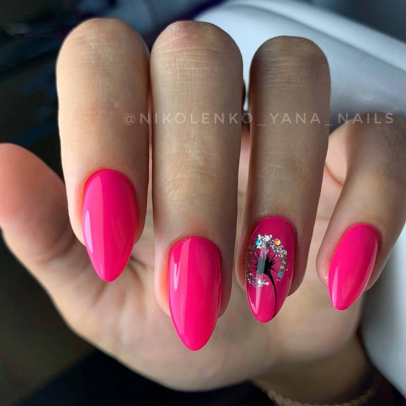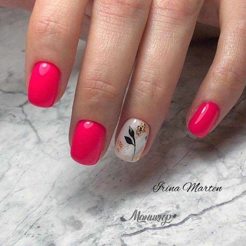 - Розовый — один из самых популярных оттенков на данный момент. Розовый оттенок будет великолепен и в однотонном маникюре, и в сочетании с дизайном.