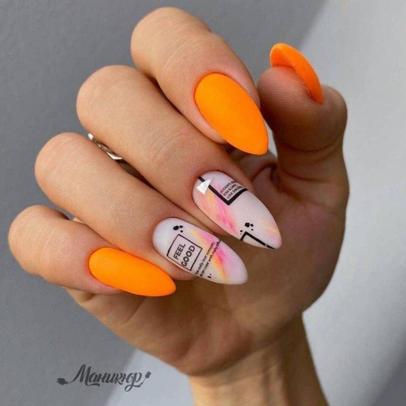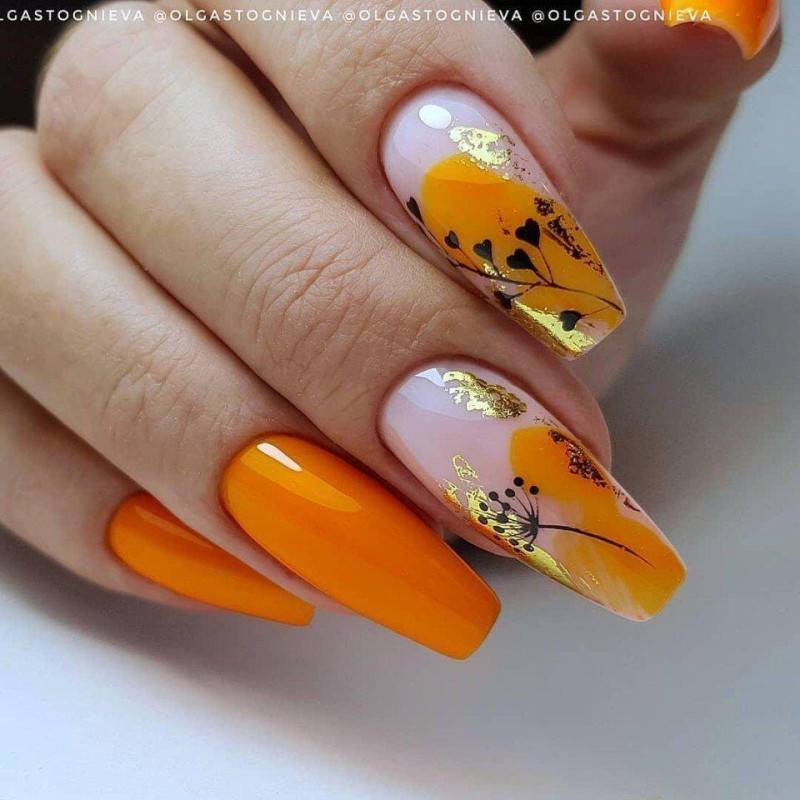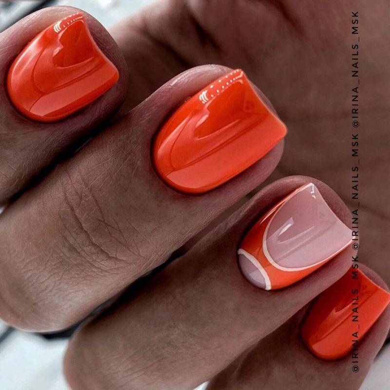 - Оранжевый — эффектный оттенок, для любителей яркого маникюра.