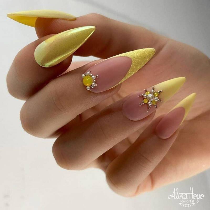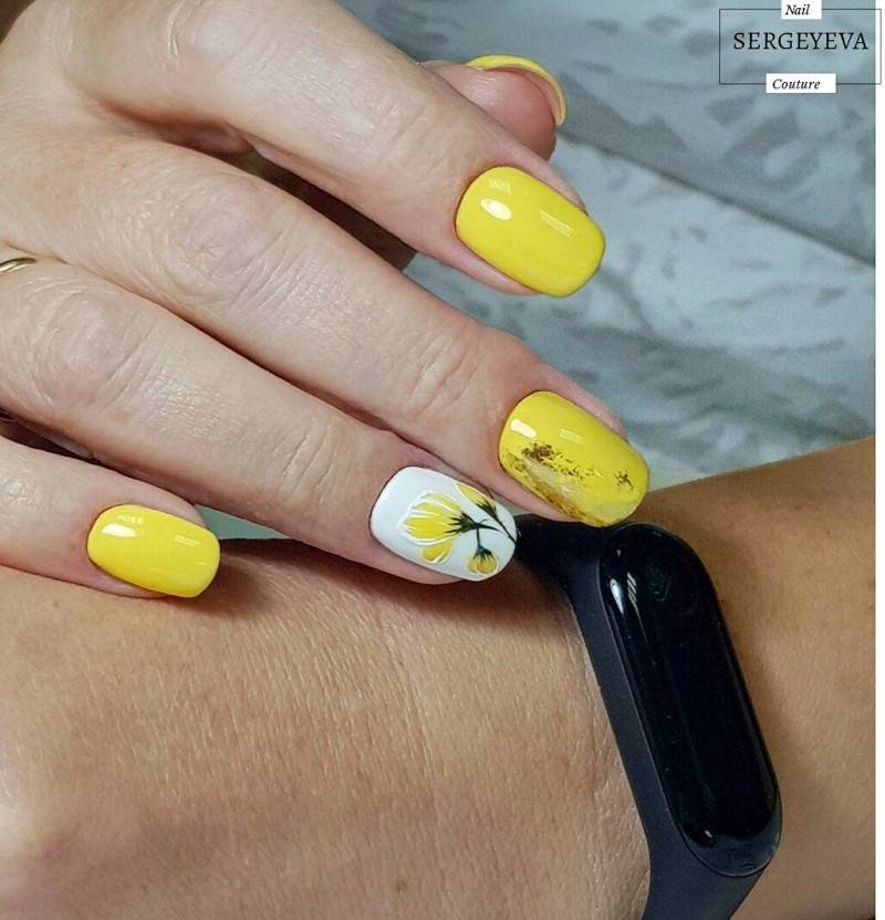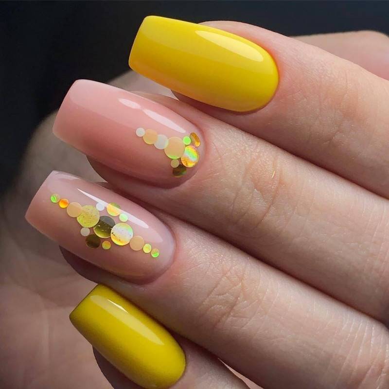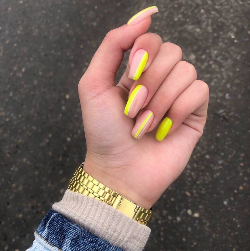 - Один из самых ярких и жизнерадостных летних цветов — желтый. Каждый летний сезон невозможен без желтого лака. В 2024 году в моде более пастельный оттенок желтого.