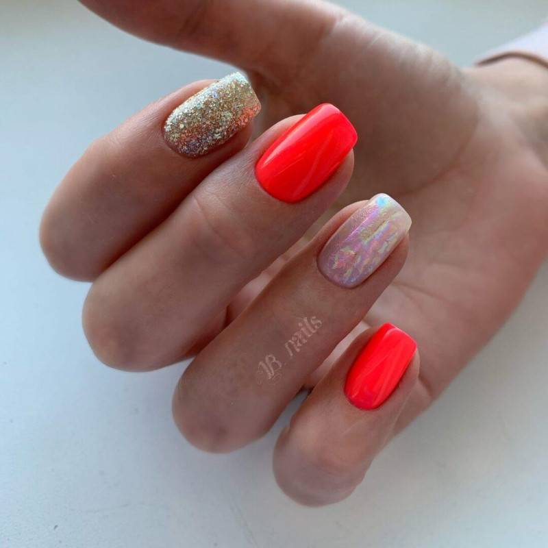 Для самого яркого маникюра, нельзя забывать о витаминных оттенках, таких как мандариновый, лимонно-желтый, кораллово-красный и салатовый.