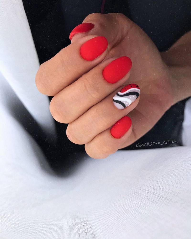 - Красный ассоциируется со страстью, обольщением и опасностью. Он подойдет ногтям любой формы и длины этим летом.