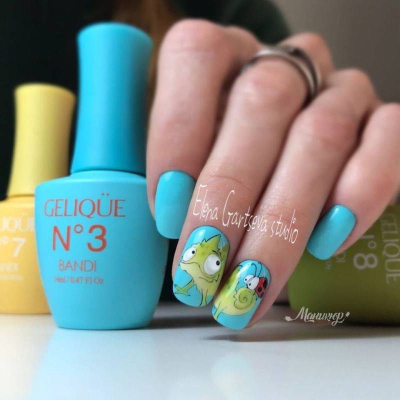 Добавить яркости и креативности маникюру можно с помощью рисунков. Актуальное решение на 2023 год – различные анималистические принты, которые смотрятся очень интересно и красиво, минималистичные рисунки, наклейки, стемпинг и даже рисунки с этническими мотивами и атрибутами разных народов мира. Одним из новых оригинальных дизайнов также является пенный маникюр – летний, напоминающий об отдыхе и море. Создайте этот дизайн в дополнение к купленным турам и добавьте в свой маникюр ощущение релакса и отпуска. В этом дизайне используются синие, голубые, белые и золотые оттенки, способные образовать на ногтях настоящее море пены. Никогда не выйдут из моды и разные узоры из сочных, ярких фруктов.