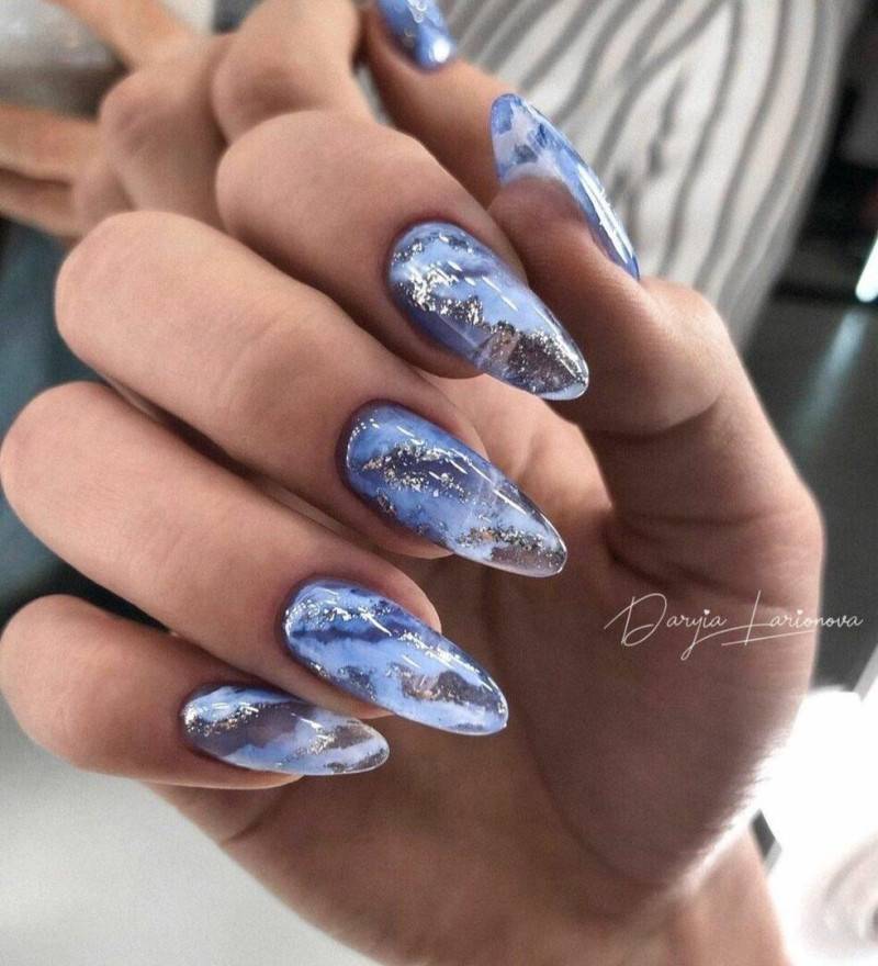 Форма при этом может быть разная, кстати именно она влияет на общий внешний вид рук. Поэтому перед ее выбором стоит проконсультироваться у мастера и решить, что будет лучше. На длинные ногти летом хорошо подойдет маникюр облако. Здесь сам ноготок может выкрашиваться в голубой, синий, цвета индиго, а затем в верхней части рисоваться облака.