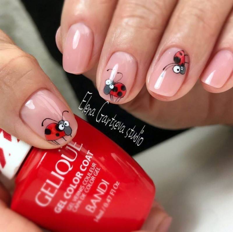 Рисунки бабочек в этом году сменятся изображениями других милых, летних жучков. Трендом этого сезона станет изображение на ногтях стрекоз, божьих коровок и прочих милых насекомых.