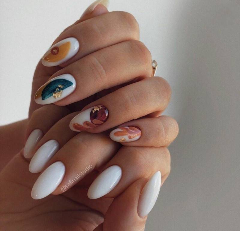 Колоритный летний маникюр 2024-2025 – модный летний маникюр с абстрактными рисунками, кляксами.