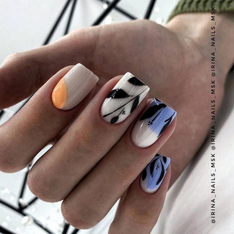 Модный летний маникюр с абстракцией – это как будто небрежные мазки художника, а не старания профессионального мастера, которые плавно ложатся на ногтевую пластину, создавая эффект экспрессии и красочного взрыва.