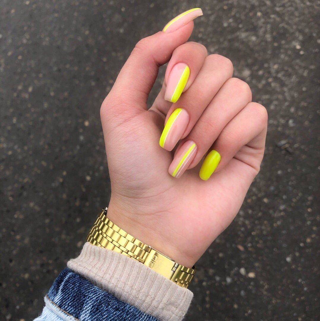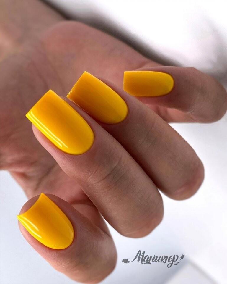 - Один из самых ярких и жизнерадостных летних цветов — желтый. Каждый летний сезон невозможен без желтого лака. В 2024 году в моде более пастельный оттенок желтого.