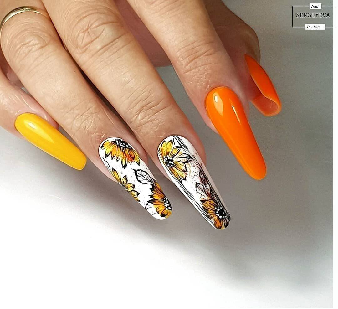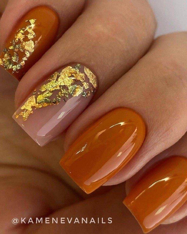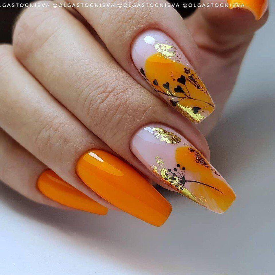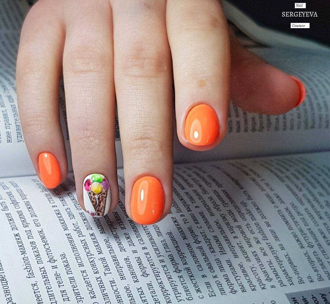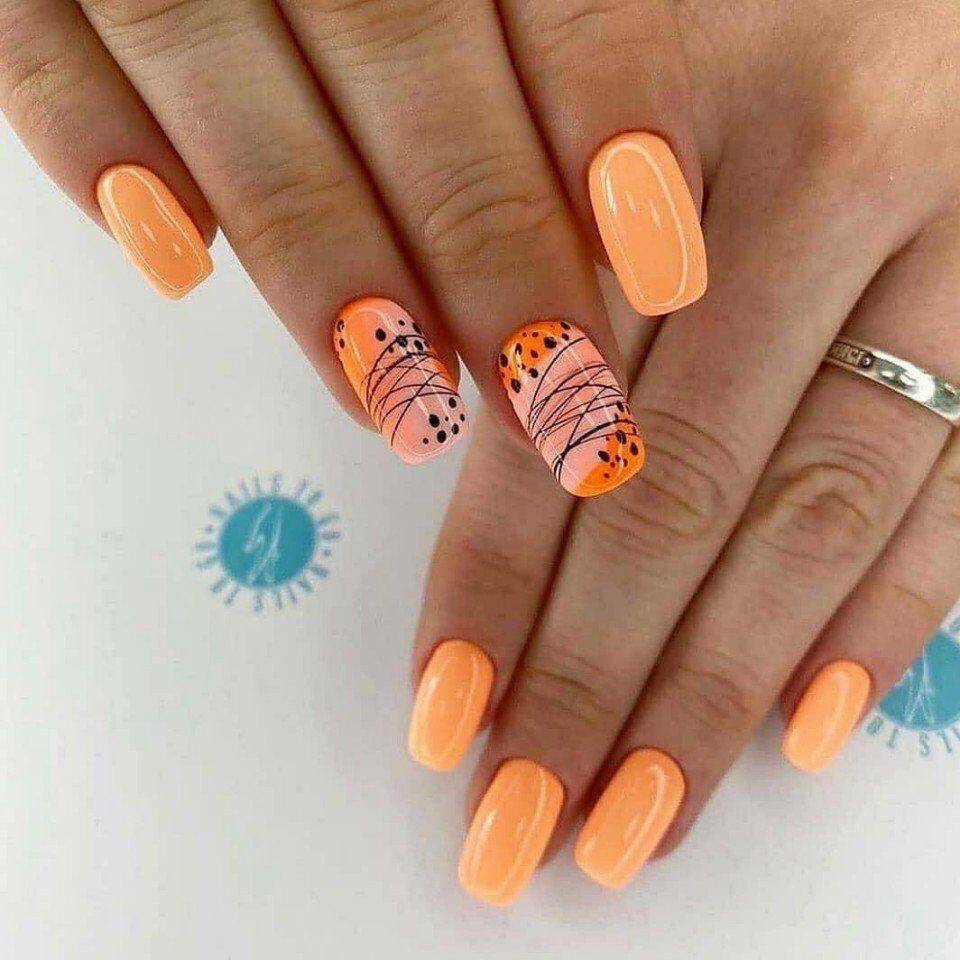 - Оранжевый — эффектный оттенок, для любителей яркого маникюра.