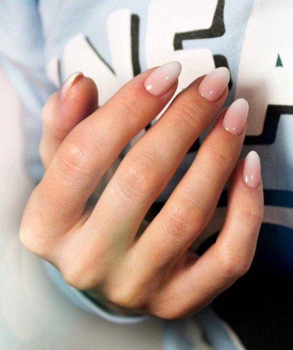 Лаконичное омбре — это нежные и пастельные оттенки лака, которые мягко и плавно образуют единый цвет. Летом 2023 года не рекомендуется использовать яркое и темное омбре. Именно лаконичный, простой, минималистический и нежный вариант будет в моде. Маникюр омбре можно дополнять небольшим количеством декора: стразы, легкие рисунки, а также фольга. Лаконичное омбре превосходно смотрится на разной форме ногтей и длине.