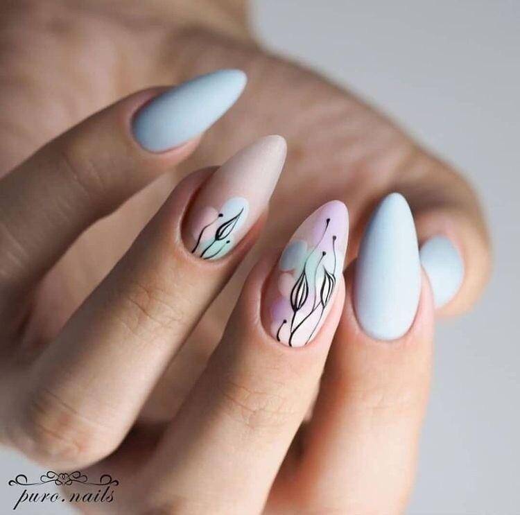 Как раз летний маникюр в пастельных тонах может стать экспериментальной основой для создания других вариантов маникюра. Дополнить однотонный летний маникюр всегда может аккуратный рисунок на одном ноготке.