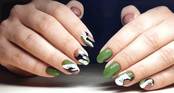 Броская абстракция завоевала списки модных трендов не только в фэшн-индустрии, но и в мире маникюра. Не бойтесь сочетать красочные оттенки и яркий декор. Тандем белого горошка, космических разводов и разнообразных линий — все это смотрится круто и новомодно. С таким дизайном вы будете выглядеть суперстильно и молодежно.
